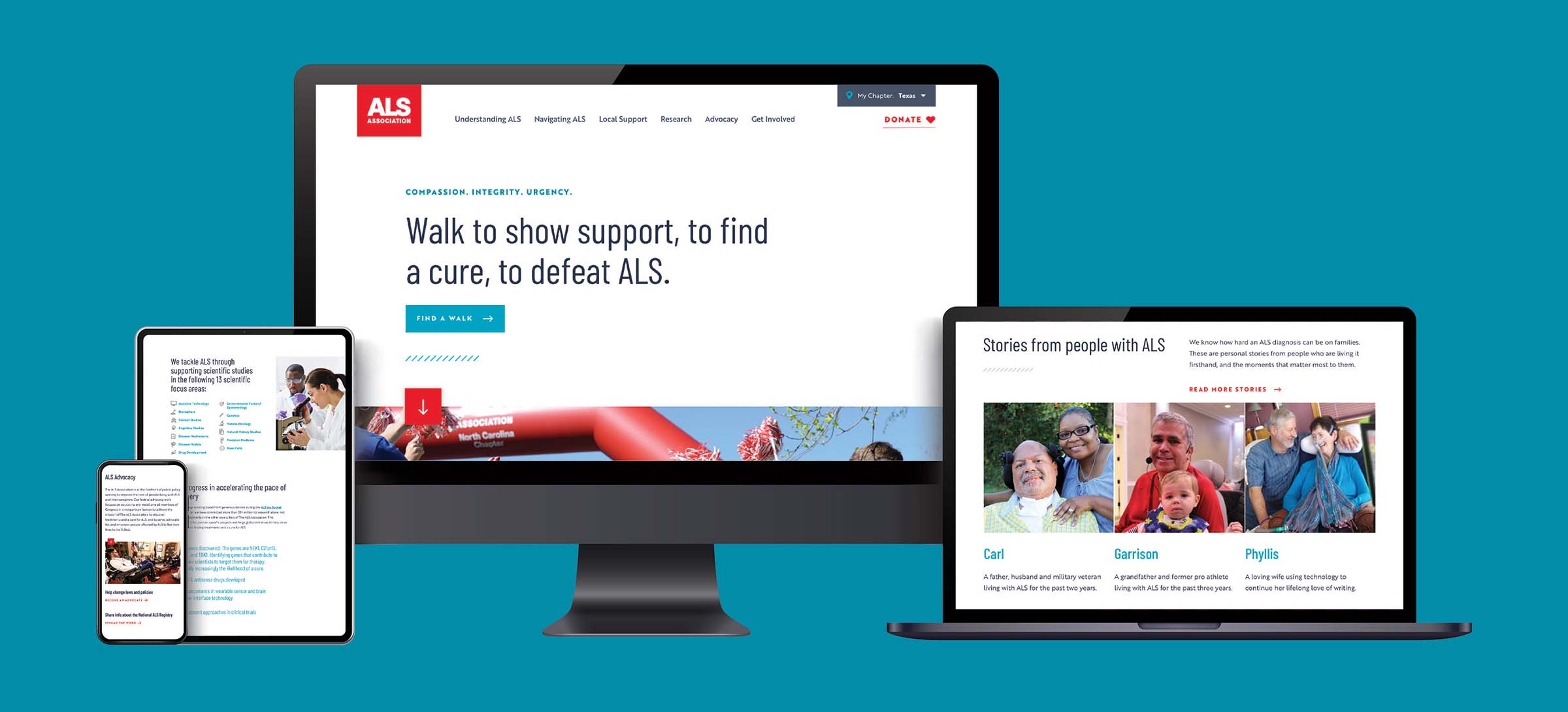 Because the website redesign and digital ecosystem create a centralized and easier to manage platform for the Association to serve its diverse audiences and stakeholders, the organization is able to focus less time on technical issues and more time on how they can use their digital platforms to assist in carrying out their mission. Our team continues to support the ALS Association to extend this digital transformation across the chapter sites, and support and continuously enhance how its digital ecosystem generates greater impact to achieve its wide-reaching mission.