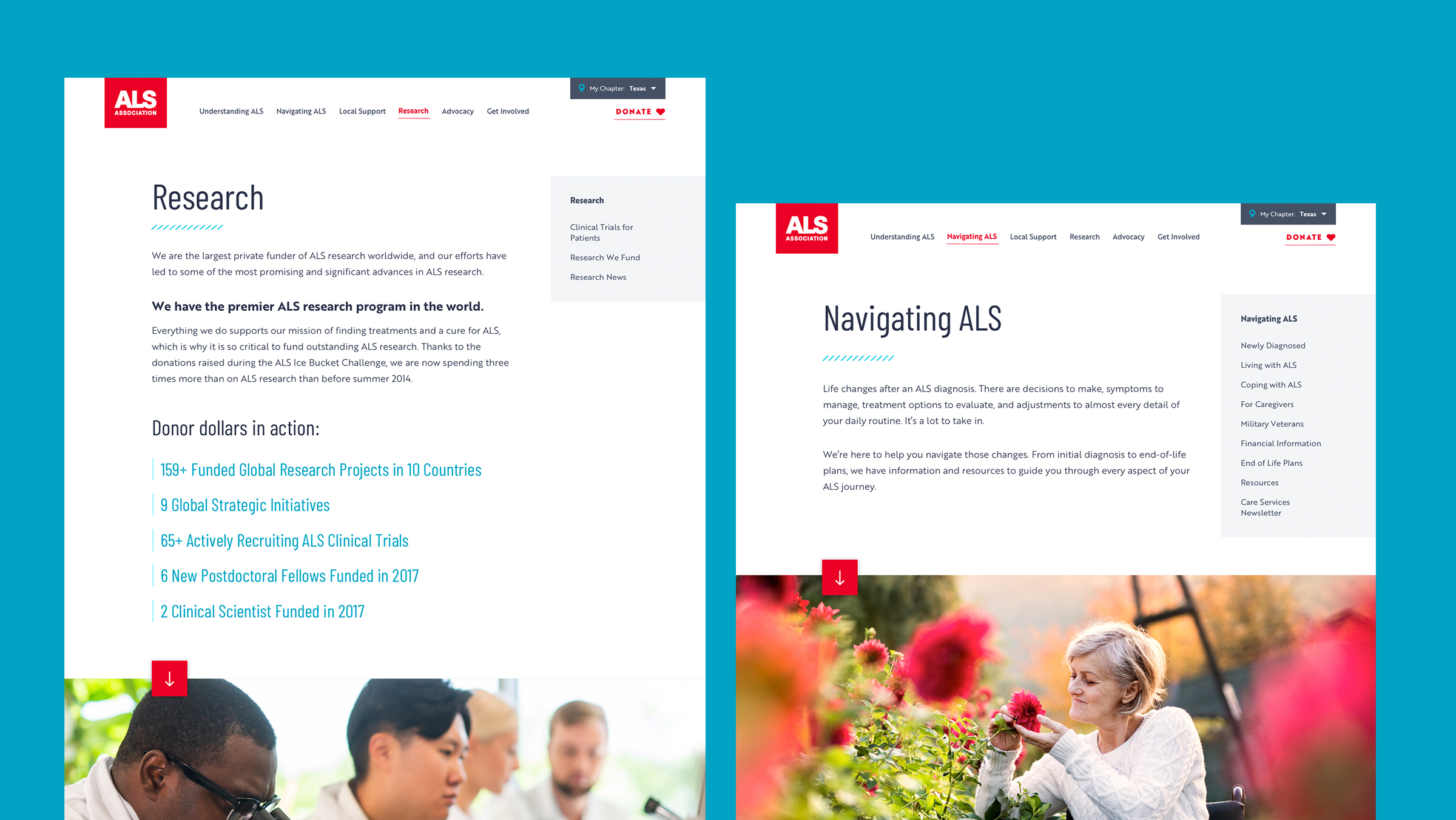 Before the digital transformation project, the ALS Association had a national website and individual sites for each regional chapter, which was causing issues with version control. If a piece of content was updated on the main ALS Association website, each chapter website would then need to update it as well. The potential of having outdated information on some of the sites was, understandably, a major concern due to the complexity of the disease.