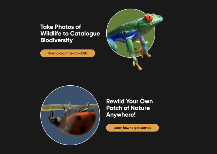 Encourages active participation, offering users actions such as rewilding an area in their communities or helping conservationists document and catalog biodiversity in their communities.