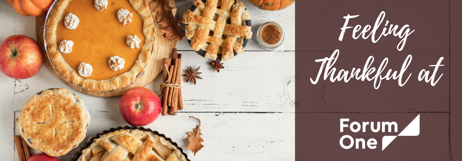 As we enter Thanksgiving week, I reminisce on what I’m thankful for at Forum One. It’s been over 18 years since I first started at Forum One and I’ve seen the company grow in many ways, including annual revenue, from 20 employees to 140, from one remote employee to over half the company. I’ve seen amazing people come and go and I’ve met smart, funny, caring, kind, and passionate people that have become my friends for life.
