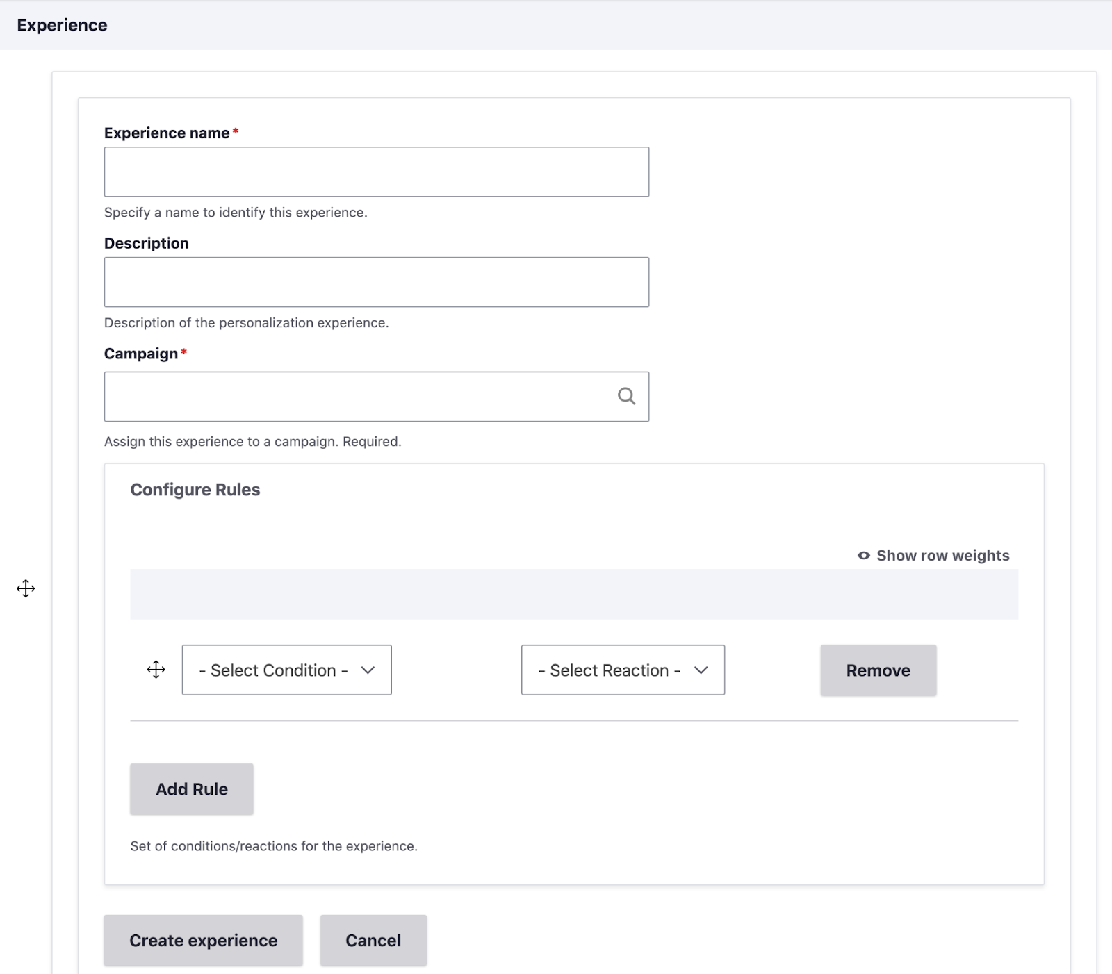 We manage the personalization tool through three components: campaigns, experiences, and rules.