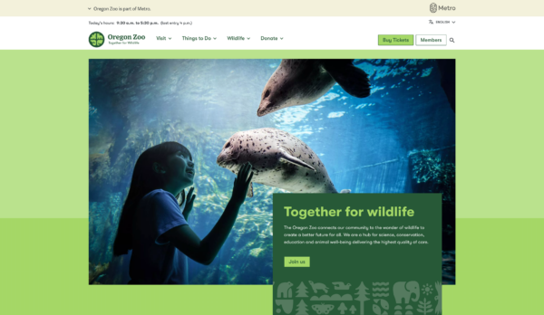 As part of our work with Metro, Forum One redesigned the Oregon Zoo website on the shared Drupal 9 platform, incorporating new branding and design guidelines to make the website an accessible, multilingual, and mobile-first digital experience. The redesign includes integrations with external ticketing and donation platforms to create a seamless user experience.