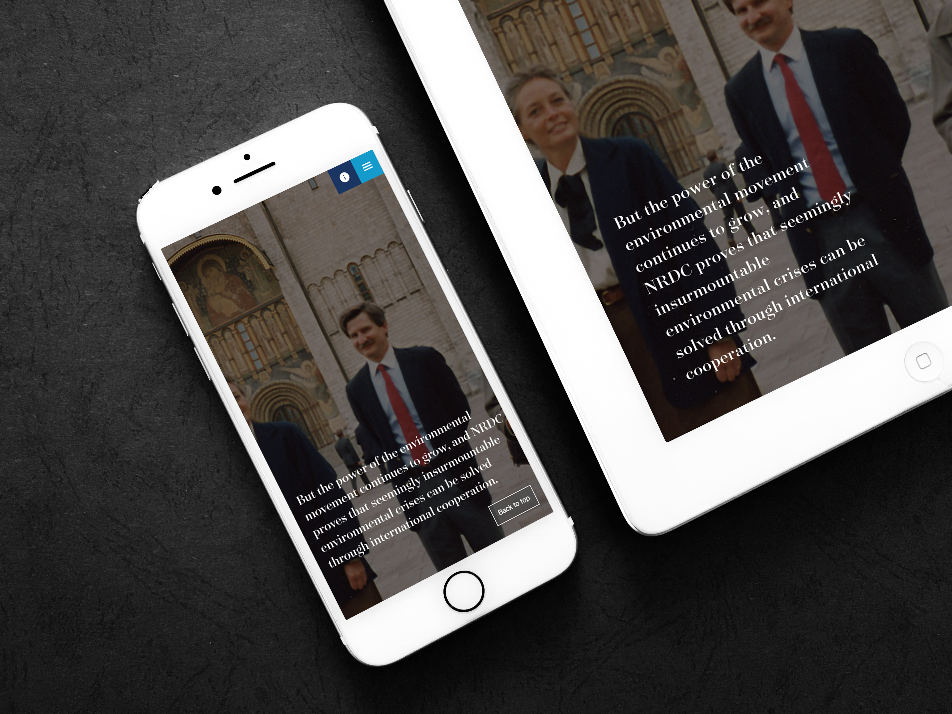 Audiences are able to explore NRDC’s impact stories in multiple ways, from experiencing the full chronological storyline with a smooth scrolling experience, to using the menu to jump to particular areas of the timeline. The design uses full-screen photography, bold typography, and delightful interactions and animations to create a truly immersive experience. The site is developed in Drupal 8 and optimized beautifully for mobile, delivering audiences an engaging, interactive, and seamless experience.