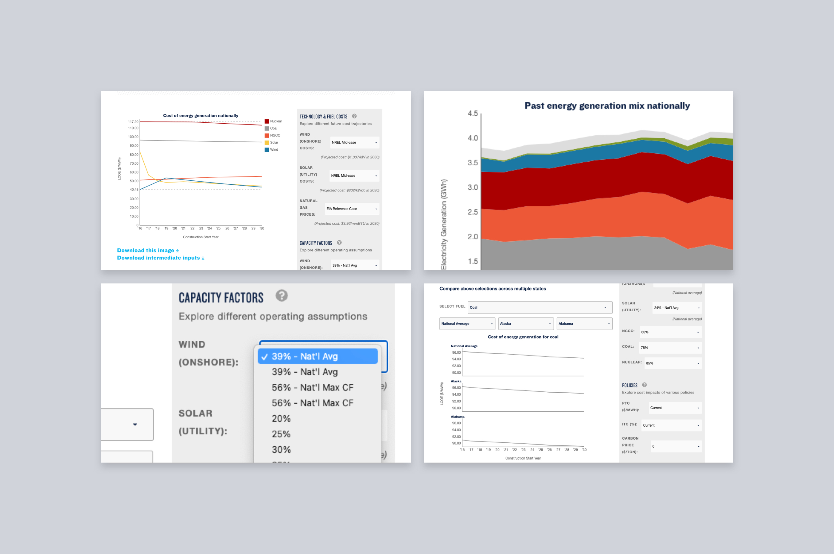 We also designed and developed a new calculator tool for NRDC to help policymakers, regulators, developers, and the public calculate how much it costs to build power plants in their states and compare the cost to other sources of generating electricity, now and based on assumptions they can manipulate to plan for the future. We developed the tool as a React app embedded in NRDC’s existing Drupal website, allowing NRDC content managers to easily update the inputs when new data are released without requiring a developer.