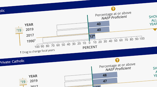 The National Assessment of Educational Progress (NAEP), a U.S. Department of Education program, assesses students nationwide on educational outcomes and reports the results to a wide set of stakeholders, including policymakers, education officials, and the media. Since 2012, Educational Testing Service (ETS) has engaged Forum One to design and build more engaging, interactive reports to share the NAEP results, including the most recent 2022 Nation’s Report Cards for Mathematics and Reading, designing and building interactive reports to explore NAEP data at the national, state, and district levels. We also created Highlights pages of infographics, visualizations, and data stories to summarize key takeaways, trends, and insights into the state of K-12 education, including those for the Mathematics, Reading, and Science reports.