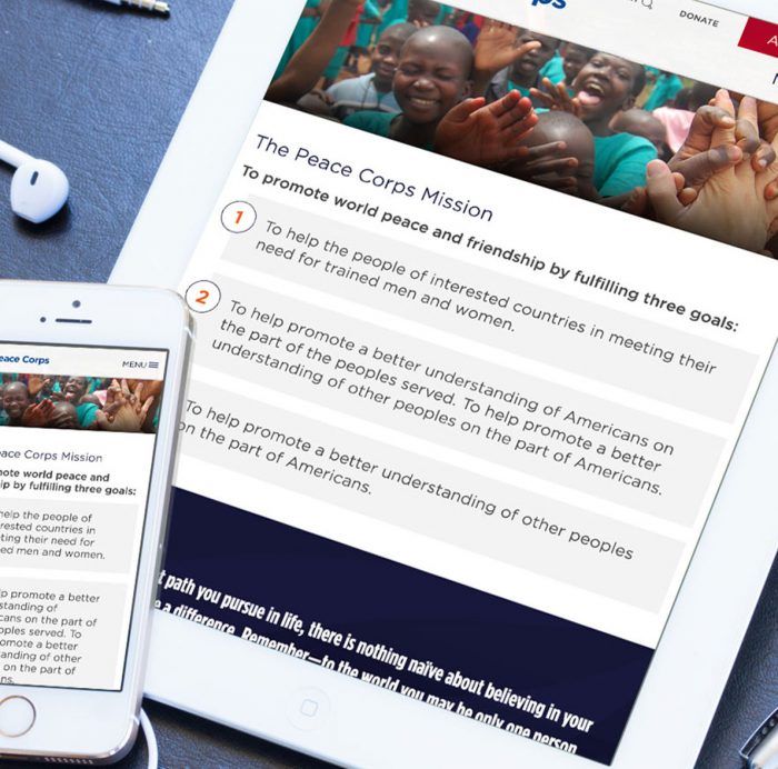 How better to start a new website design than with the structures that hold it in place? Alongside Peace Corps, Forum One’s UX and Creative teams joined forces to restructure the Peace Corps website, focusing on areas like volunteering, countries where volunteers serve, and stories about real-life Peace Corps experiences.