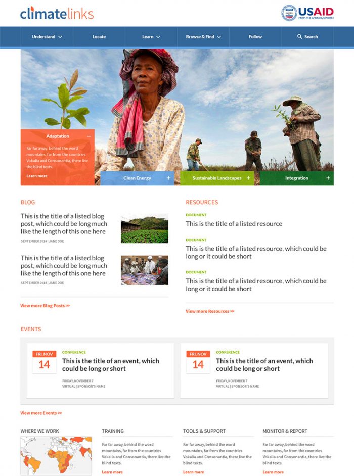 The vision of the Climatelinks portal is to improve climate change and development programming, furthering and increasing the impact of USAID’s investments into the future.