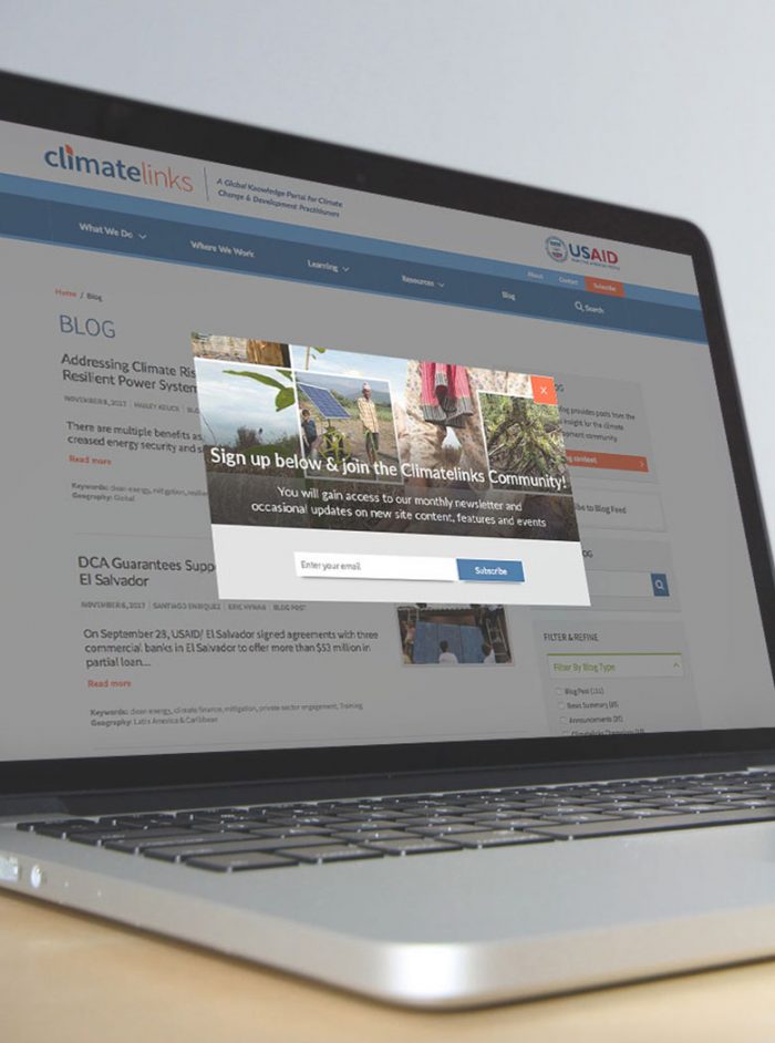 Working with the Climatelinks team, Forum One conducted an analytics audit of both the website and email newsletter, including the content, regularity of updates, and layout. This highlighted some areas of concern including newsletter length, siloed content, and a slowdown in new subscribers. To validate our findings, we also conducted a survey with current and potential subscribers and incorporated the results into our recommendations for key areas to enhance audience engagement.